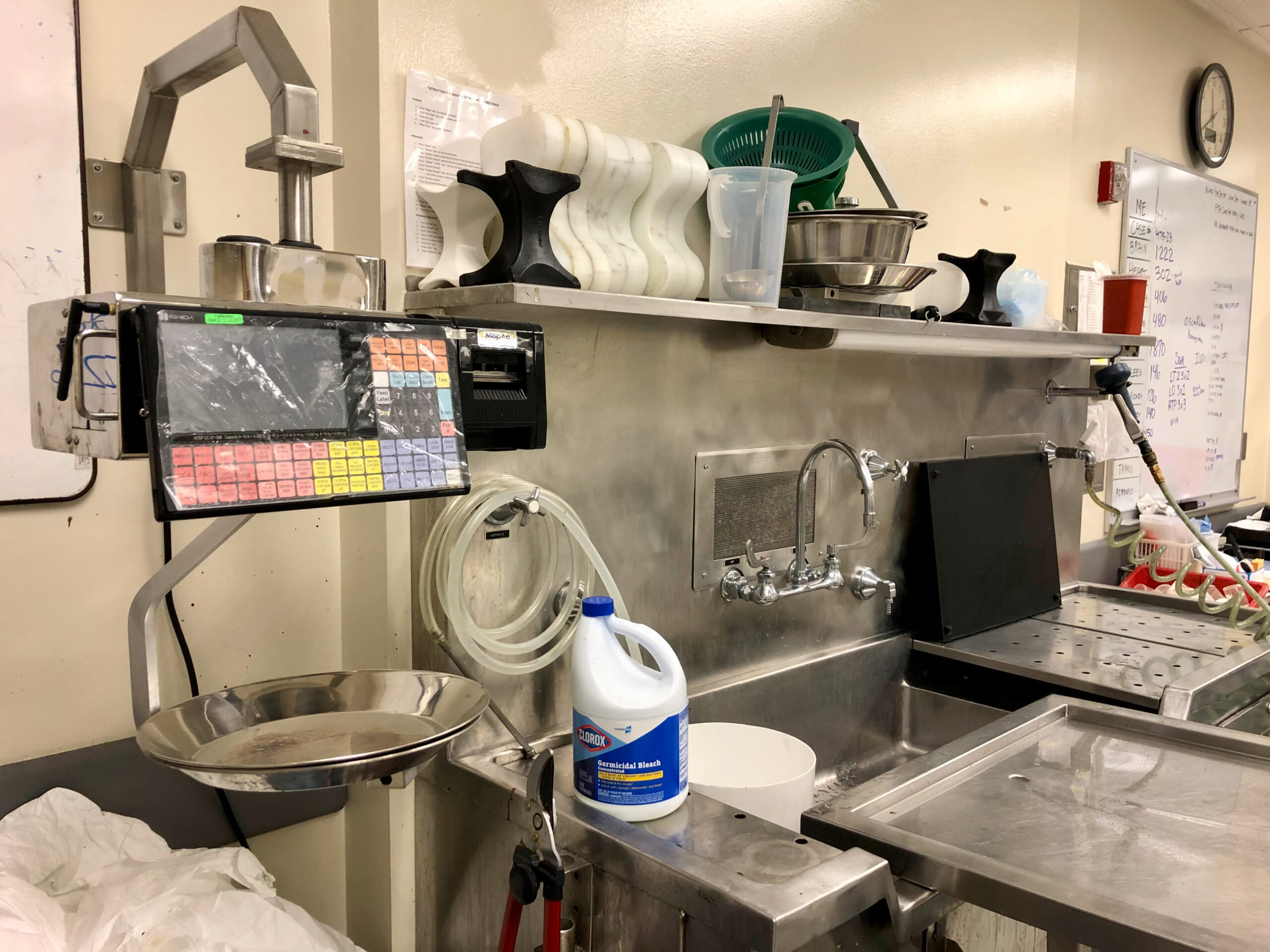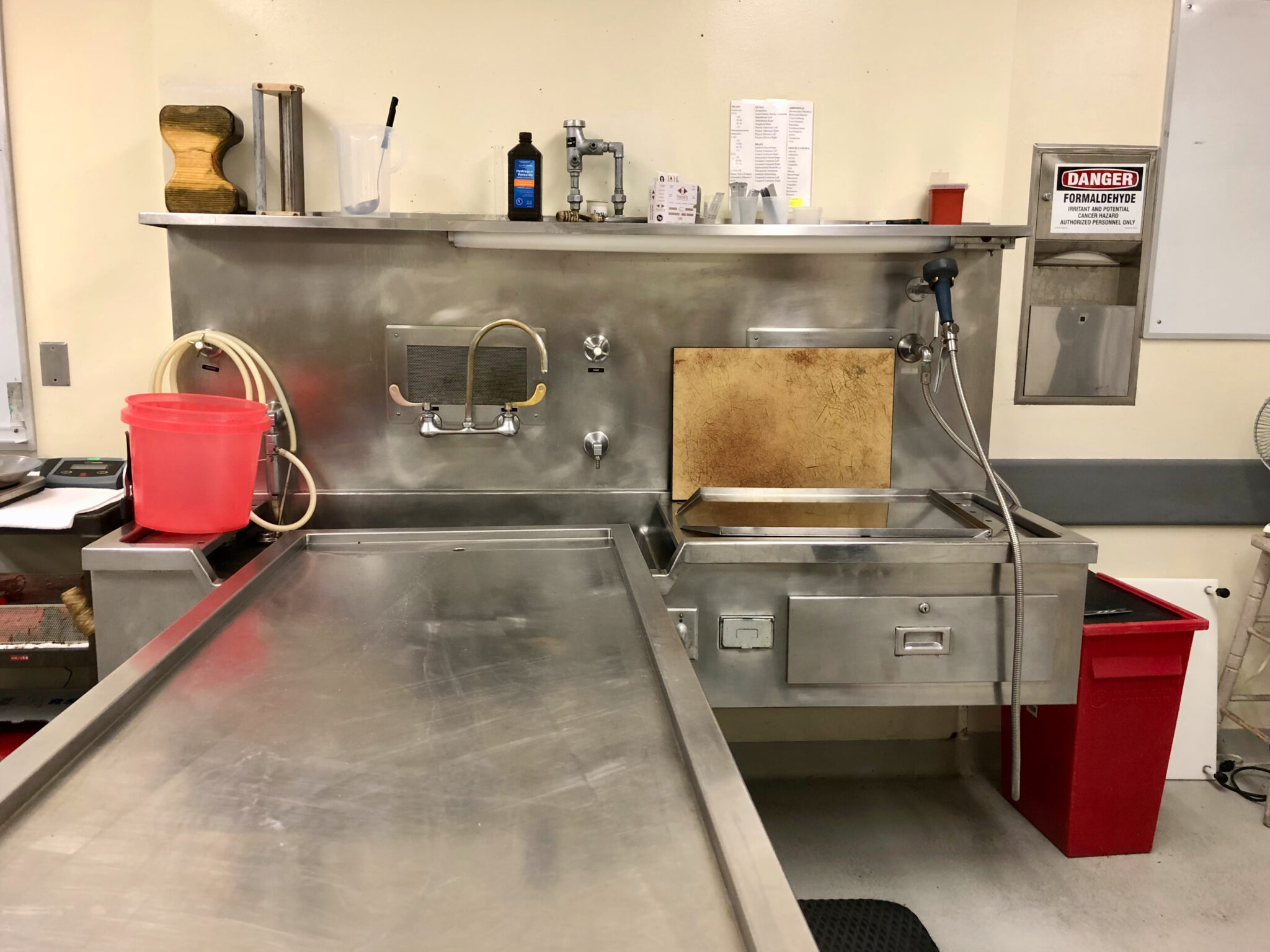 On a white board in the chilled room where autopsies are performed, written in dry erase marker, are words such as “liver,” “thymus,” and “femoral.” Scales suspended in the air are used to weigh individual organs. Countless tubes labeled with various colors are reserved for blood, urine, and vitreous fluid.
