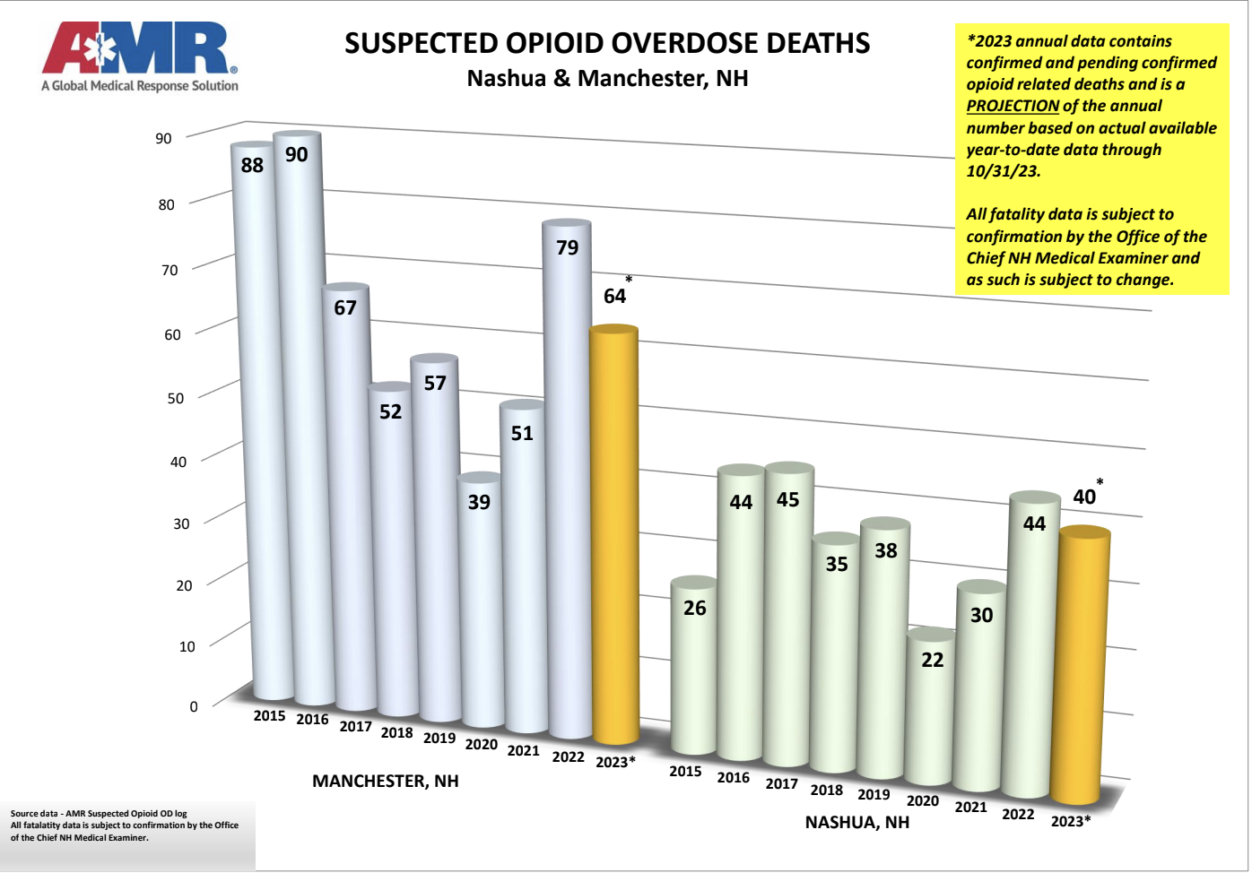 But due to staffing shortages plaguing medical examiner offices nationwide, that’s not happening in New Hampshire. In fact, data shows that out of close to 300 deaths considered drug-related so far in 2023, 140 were autopsied while the other 157 received external exams only. That’s more than 50 percent of drug deaths that have gone without an autopsy this year.