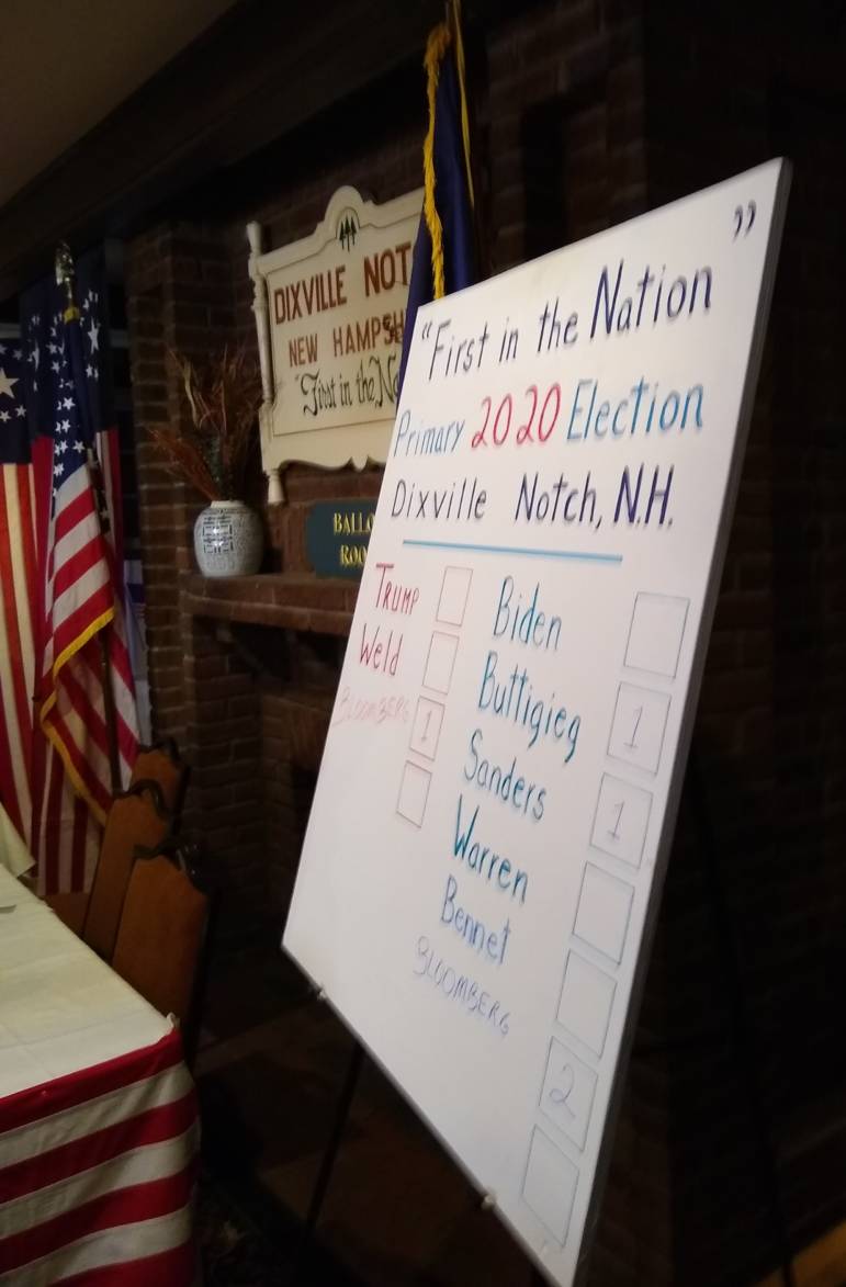 DIXVILLE NOTCH, N.H. – Even though he’s not on the ballot of either major party, former New York Mayor Michael Bloomberg has won the first votes in the New Hampshire Primary.