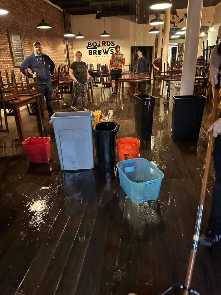 Boards and Brews suffered significant damage from the storm as several inches of water leaked from the ceiling at 941 Elm St.