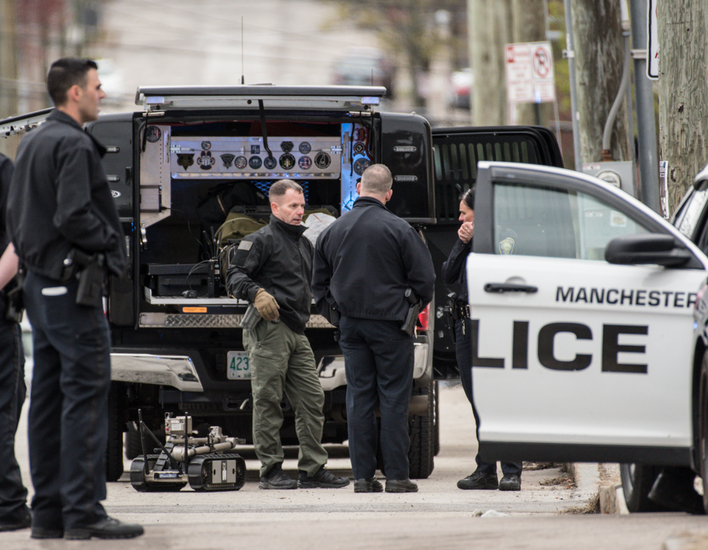 As a precaution, surrounding streets were shut down and nearby buildings were evacuated. The NH State Police Bomb Disposal Unit was brought in to look at the device. During a press conference held outside Manchester Police headquarters at 4 p.m., Aldenberg declined to describe how the device looked, only to say that “to a lay person, they would draw the conclusion that it looked real.”