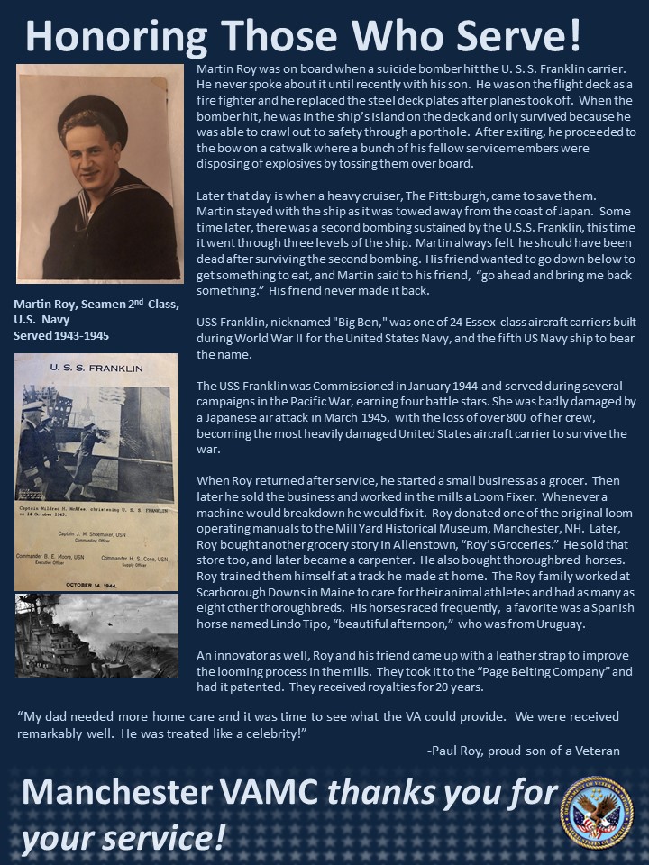 Please join the Manchester VA Medical Center team and Mr. Roy’s family in wishing Mr. Roy a wonderful 105th birthday and many more!