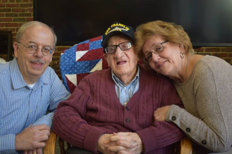 The group of fellow Navy service members presented Mr. Roy with a USS Franklin baseball cap with his name on the back. “This way folks know where you’ve been when they meet you,” said Retired Cmdr. Kenney.