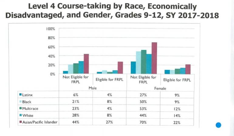 A graph in the 27-page preliminary report showing ethnic differences for enrollment within upper level class offerings
