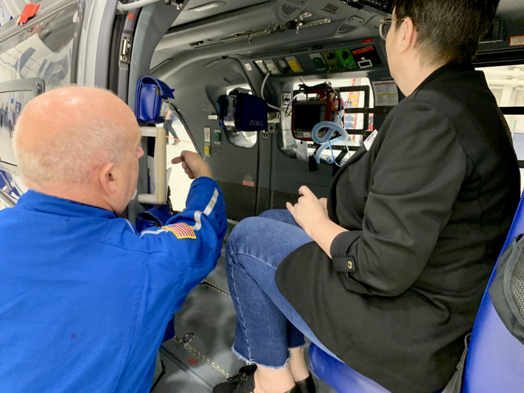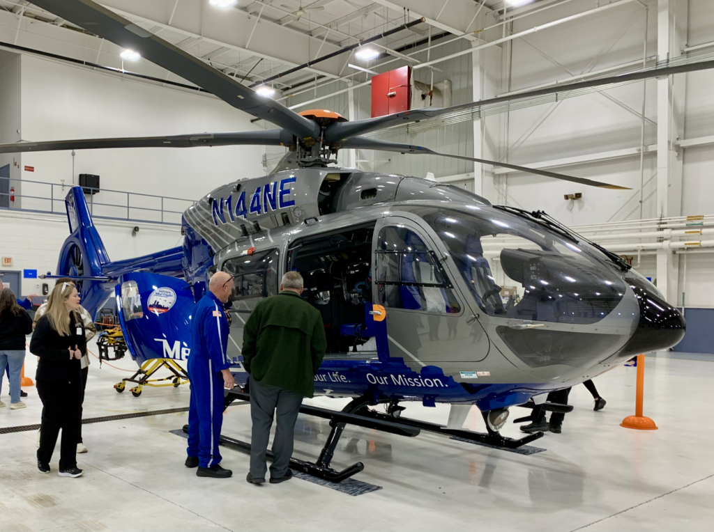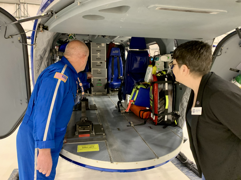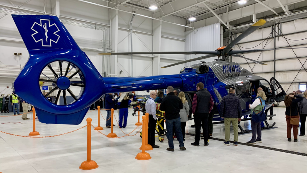 Staff explained that the MedFlight service can typically get a patient to a hospital in roughly half the time of a ground-transport ambulance, allowing critical medical care to be delivered faster.