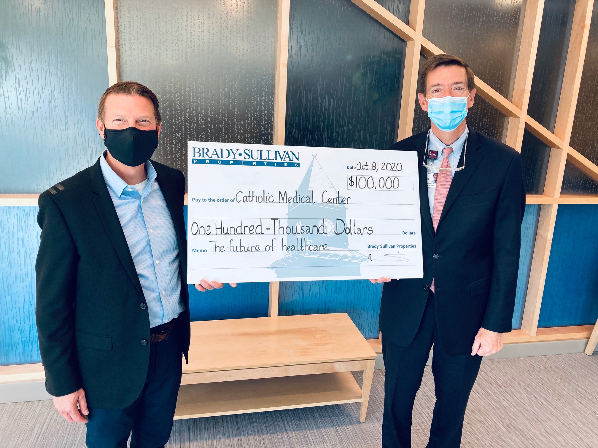 MANCHESTER, NH – Catholic Medical Center on Thursday accepted a $100,000 donation from Brady Sullivan Properties toward their campus expansion project.