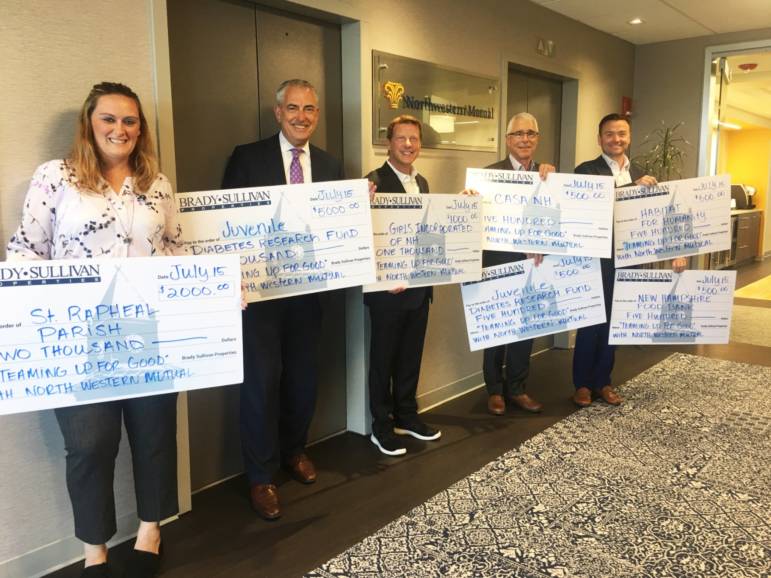 MANCHESTER, NH — Brady Sullivan has announced it will make donations to six NH charitable organizations in partnership with their long-time commercial tenant, Northwestern Mutual. The donations include; $5,000 to the Juvenile Diabetes Research Fund, $2,000 to St. Raphael Parish, $1,000 to Girls Inc, and $500 each to CASA NH, NH Food Bank, and Habitat for Humanity.