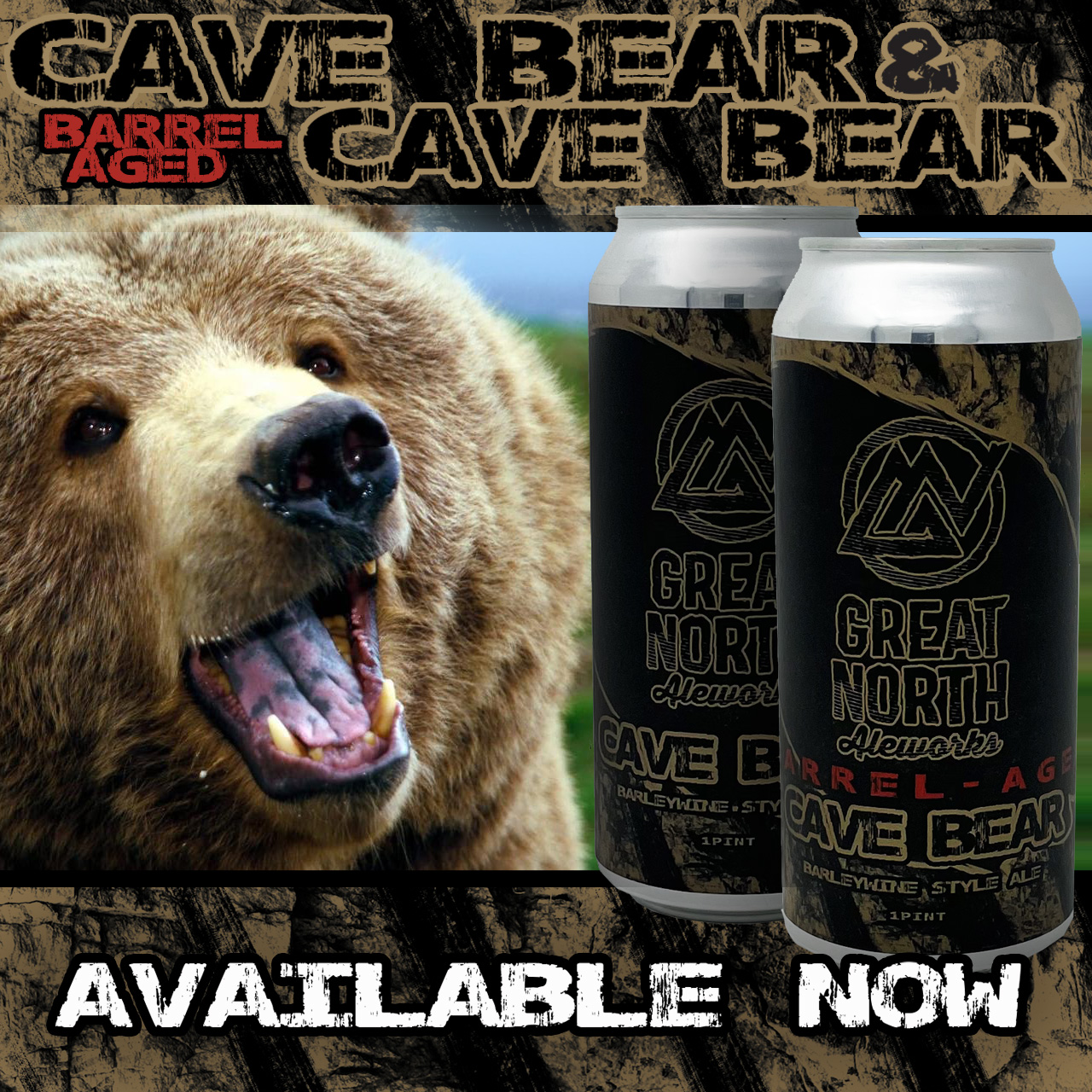 Cave Bear is available, both its original version and the barrel-aged version, in the tasting room and in cans through a limited release throughout New Hampshire and Mass.