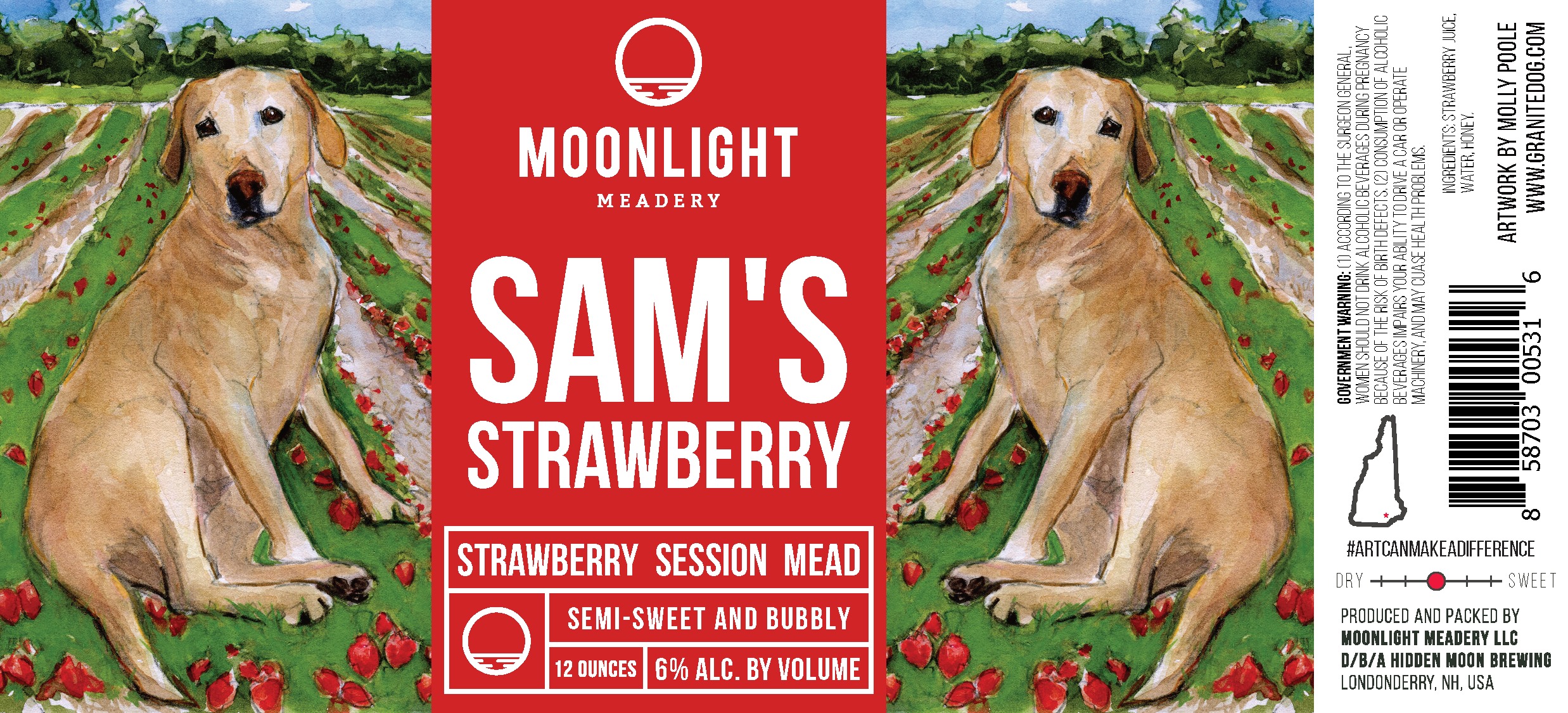 They also recently dropped Samโs Strawberry (6.5 percent) seasonal session mead. The name is an ode to the ownersโ late dog Sam who had a fondness for strawberries. The artwork is by Molly Poole, a local artist.