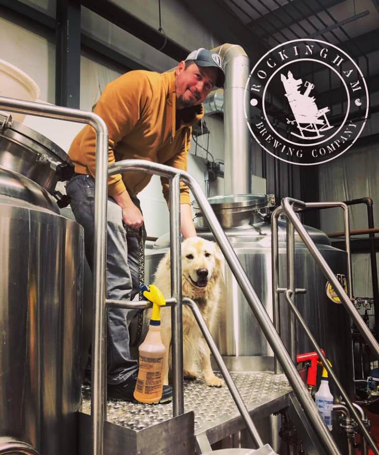 Rockingham Brewing co-owner Rob Leleszi with their dog Remy. Courtesy Photo