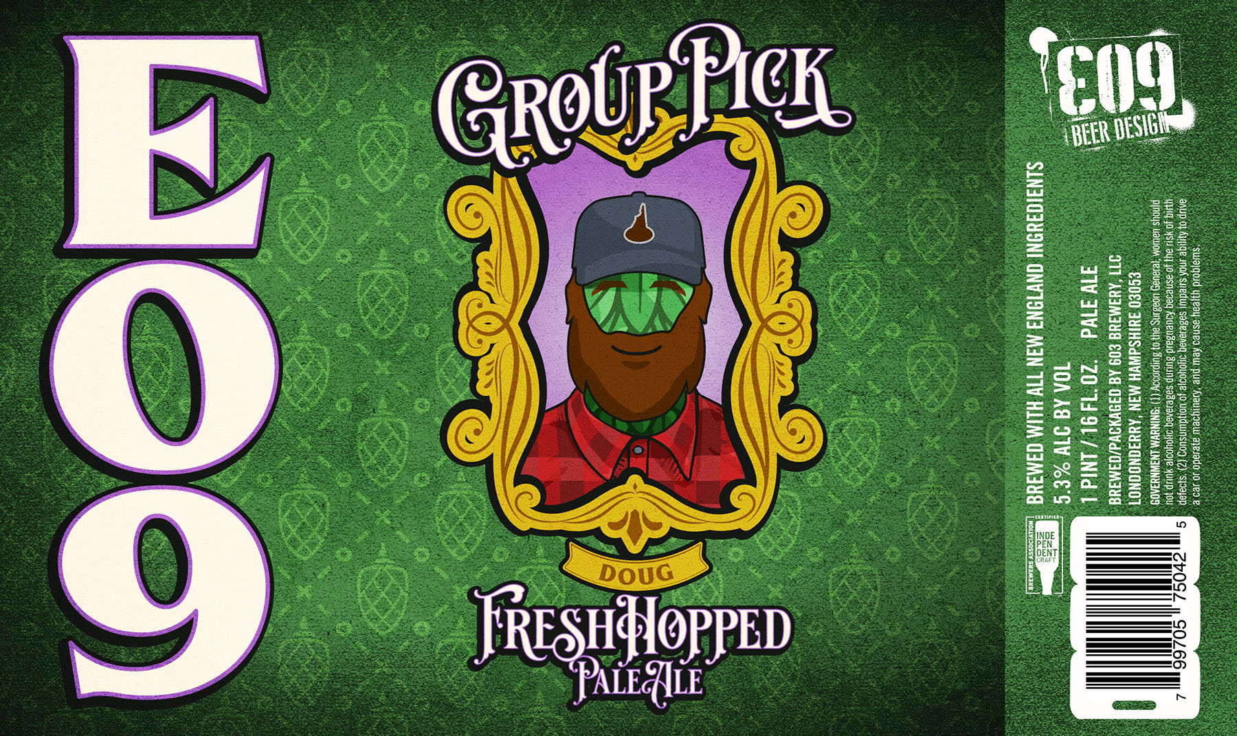 Next is E09 Group Pick Fresh Hopped Ale (5.2 percent), which was made with all local ingredients and the production team harvested all the hops from The Hop Yard in Gorham, Maine.
