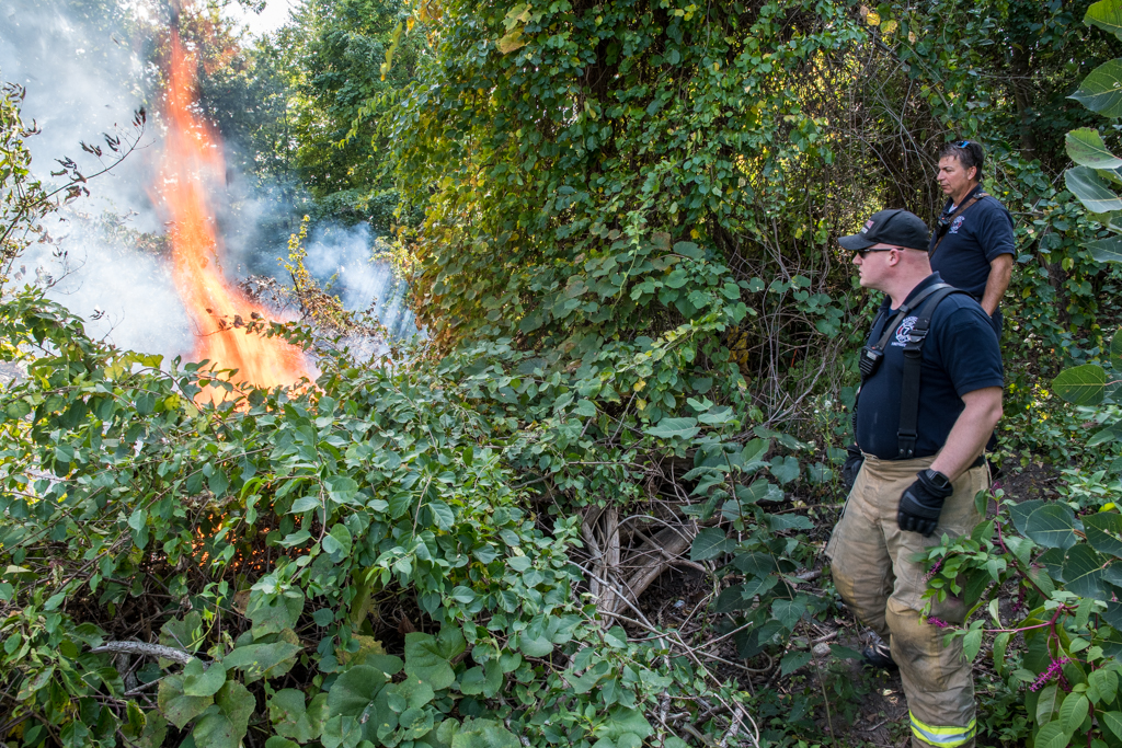 Fire at a homeless camp off March Avenue. Photo/Jeffrey Hastings