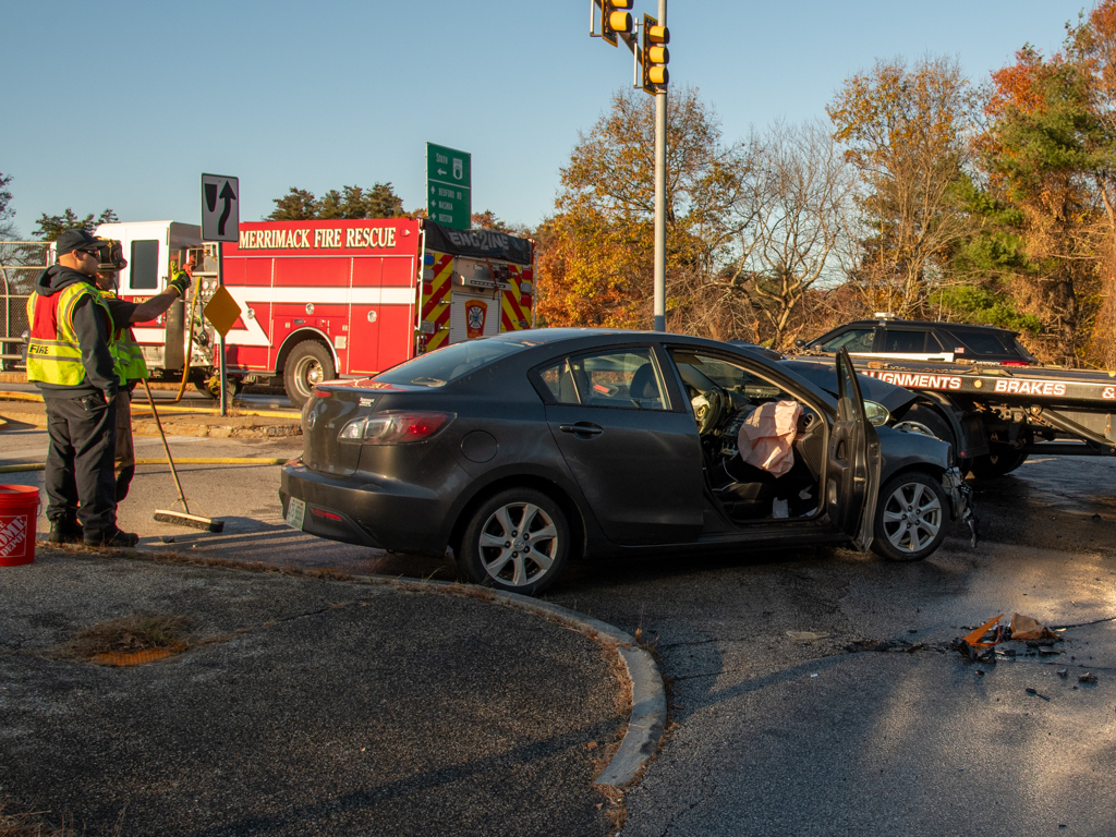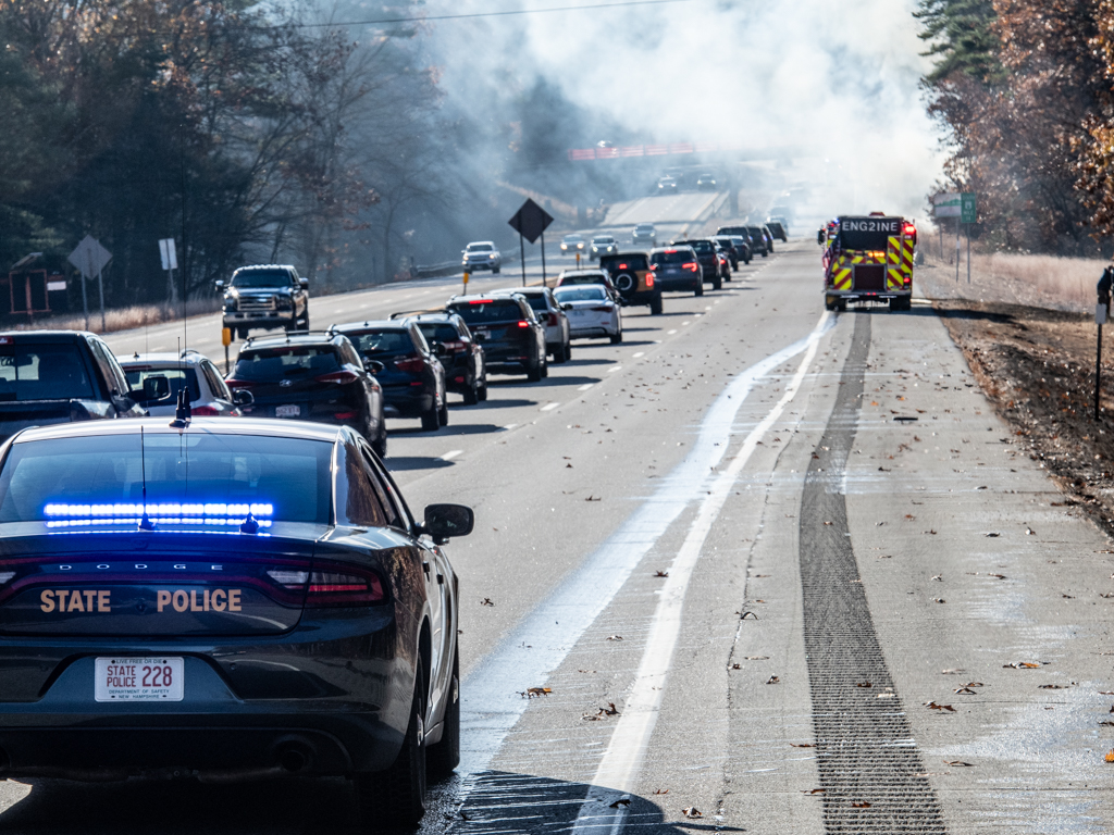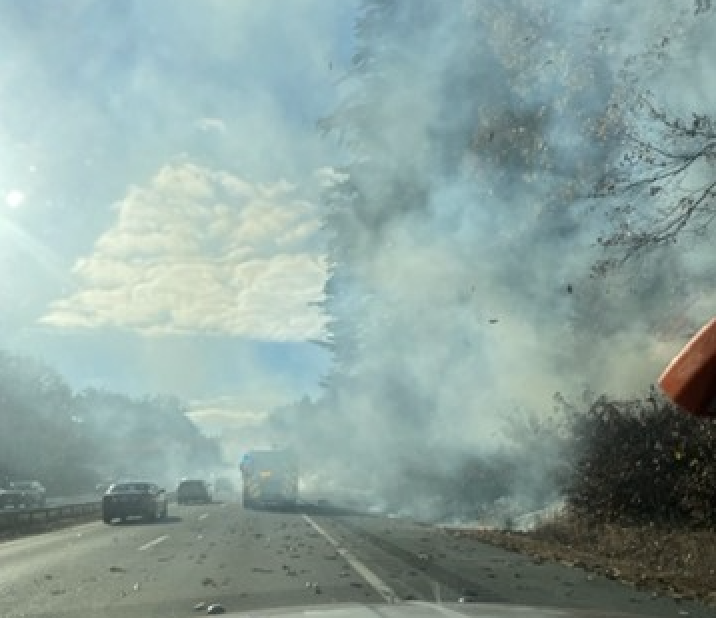 Merrimack Fire Department responded and was assisted by both Nashua and Bedford Fire Departments to put out the fires which started to catch deeper into the wood line.ย In several locations the flames approached residential properties.ย The right-hand travel lane was closed in several locations for approximately 30 minutes as crews worked to extinguish the flames.