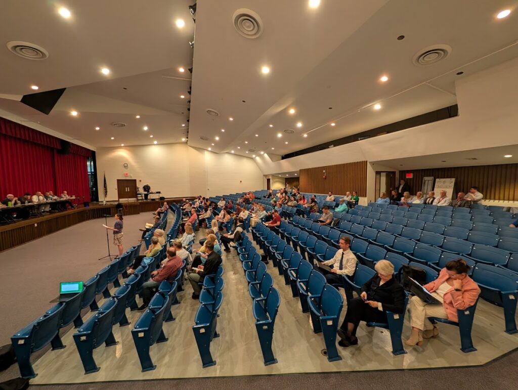 The public hearing took place at the auditorium inside Manchester Memorial High School, a venue much larger than the Aldermanic chambers of City Hall, due to an expectation that there would be considerable input regarding the two budgets and the school budget in particular.