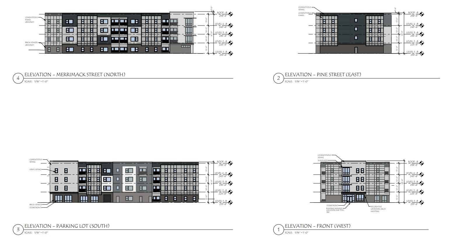 Applicant is seeking a conditional use permit application to construct multi-family residential units within the first floor, in the Central Business District (CBD) along with a site plan application to construct 44 multi-family apartment units, totaling four stories.