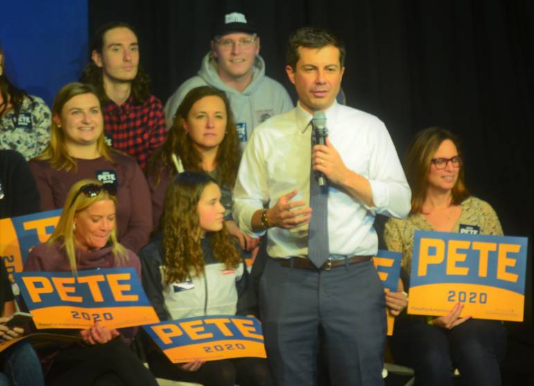 Pete Buttigieg speaks at the Rex Theatre on Nov. 8, 2019 – photo/Andrew Sylvia