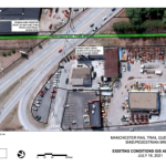 read more…: Open letter to the city regarding RAISE Grant and pedestrian bridge alternativesWhere this trail system needs investment is in its crossing of Queen City Avenue. Attached is a visual of the neighborhood where the South Manchester Rail Trail doesn’t have a way to cross Queen City Avenue along with three options that we commissioned from a Boston-based Urban design architect, Urban Lab Idea. They studied our city, our plans, and this area in-depth in the summer of 2021 and came up with three options to solve this problem.Â