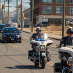 Peter Fleming, longtime advocate for disability rights, gets a special escort from those who admire and respect him.