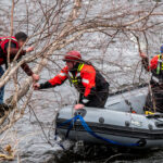 The men were spotted clinging on to items while stranded in the river. One of the men was able to swim to an island near the Manchester water treatment plant, the other man was swept downstream, but later rescued.