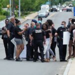 Police: Man with Trump flag on truck drives by protesters outside police station, pulls gun, gets arrested