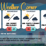 Get ready for a delightful day ahead! We’re looking at mostly sunny skies and pleasant temperatures, with a high of 41 degrees (though it might feel a touch cooler at 39). Enjoy a gentle southwest breeze at 5-10 mph that will add a refreshing touch to your day. Perfect weather to step outside and soak up some sunshine and root for the snow to melt!
