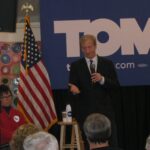 Democratic presidential candidate Tom Steyer addressed a crowd of nearly 80 at Jupiter Hall Tuesday night and told them he needed their help to save the world.