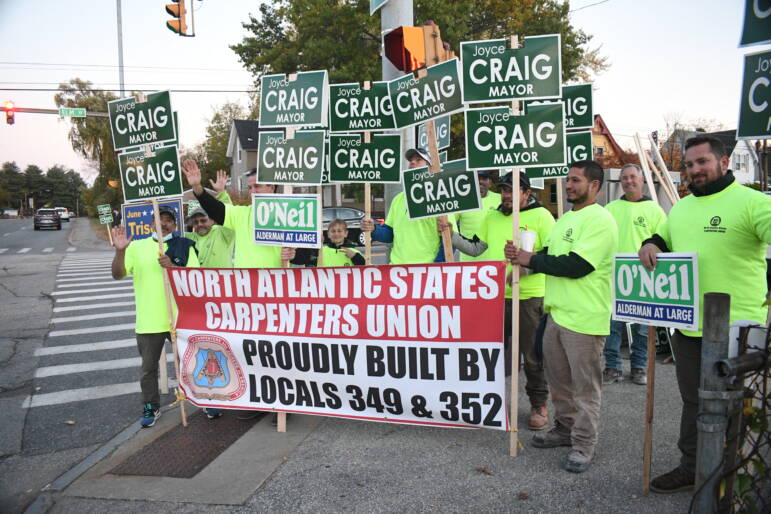 Meanwhile at the corner of Elm and Queen City Avenue, supporters of incumbent Mayor Joyce Craig, including several members of Carpenters Union Local 349 and 352, were out as well looking to show their support for Craig and other candidates supporting the mayor down the ticket.