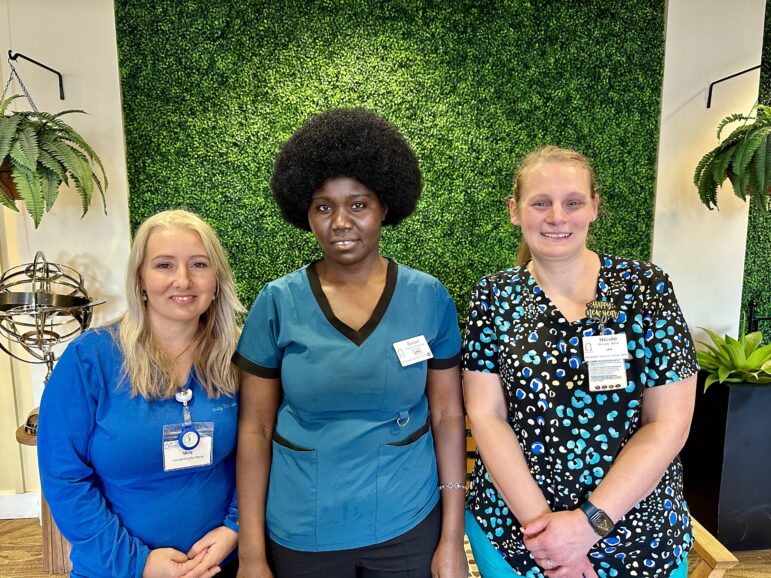 All three women transitioned from Licensed Nursing Assistants (LNAs) to LPNs as part of Pathways, which provides scholarship opportunities for healthcare nursing professionals to advance their careers. All received full-tuition scholarships to attend a full-time LPN degree program at Harmony Health Institute in Merrimack.