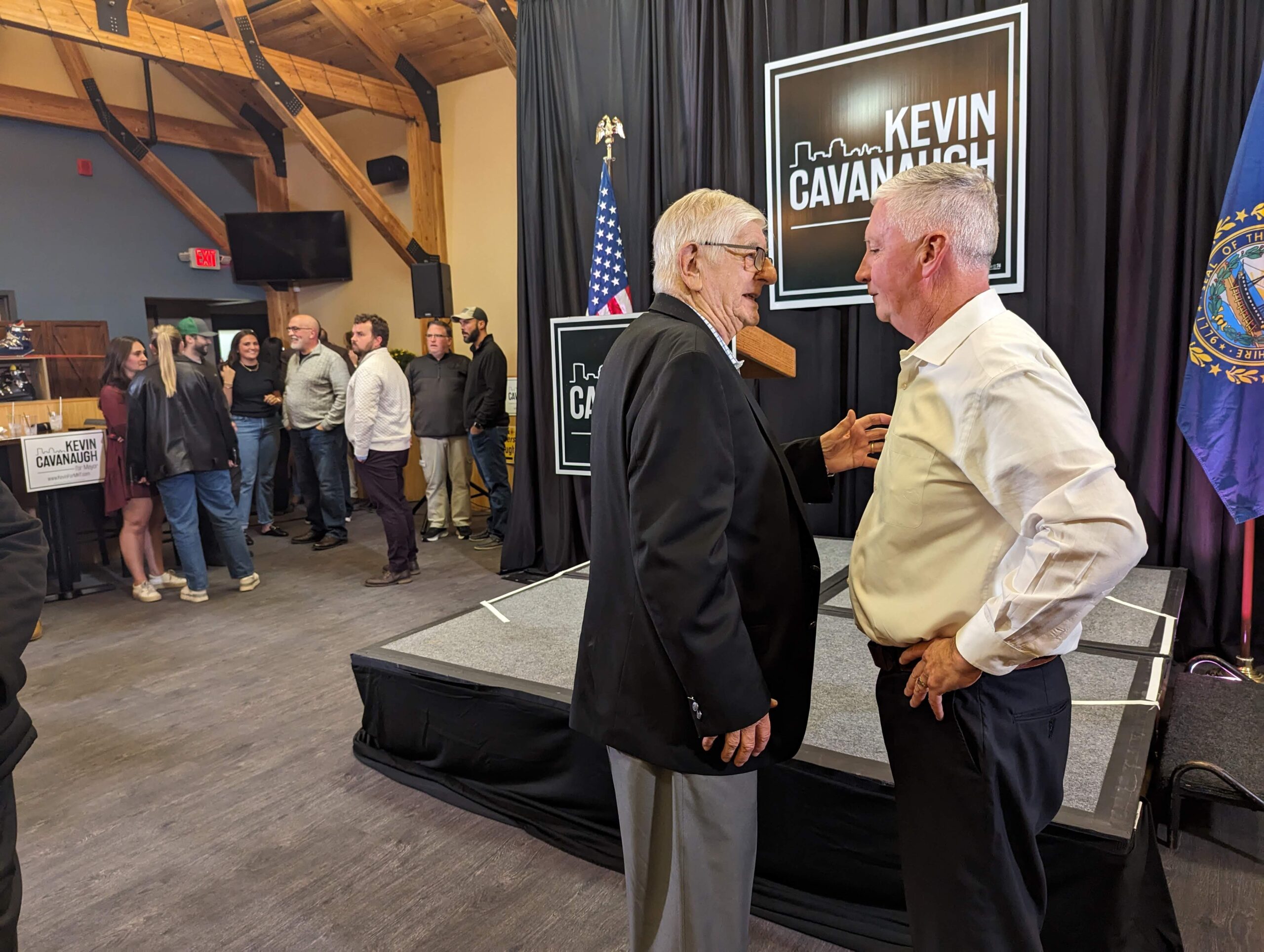 Following his speech former Manchester Mayor Sylvio Dupuis was one of the first people to make his way to the podium to shake his hand and give him some words of encouragement.