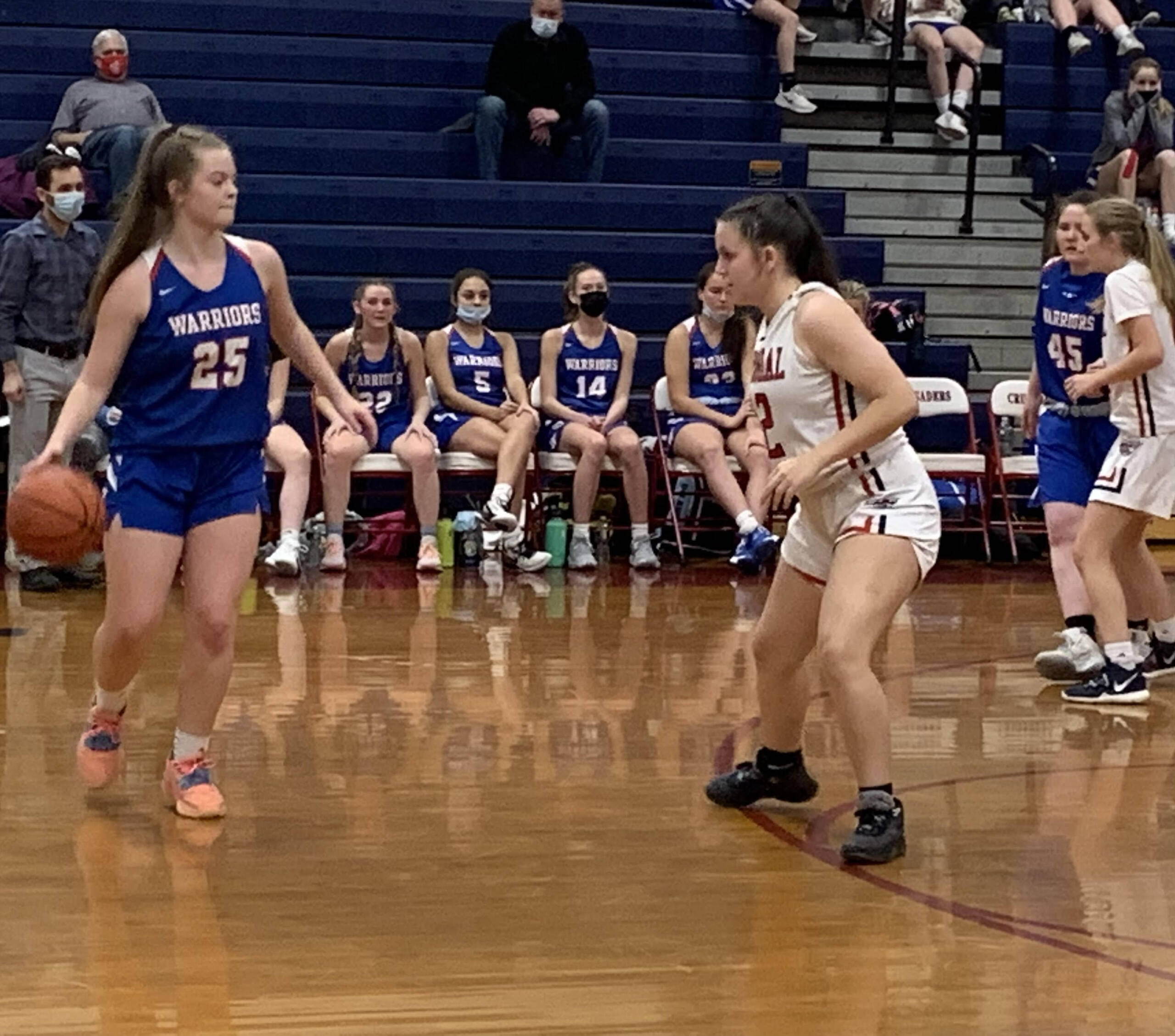 As a result, Bike went to the line for four free throws — two for the shooting foul and two for the technical. Bike drained all four to give Trinity a 53-50 lead with 4:29 left. Momentum swung completely to the Pioneers’ side and they weren’t about to let go.