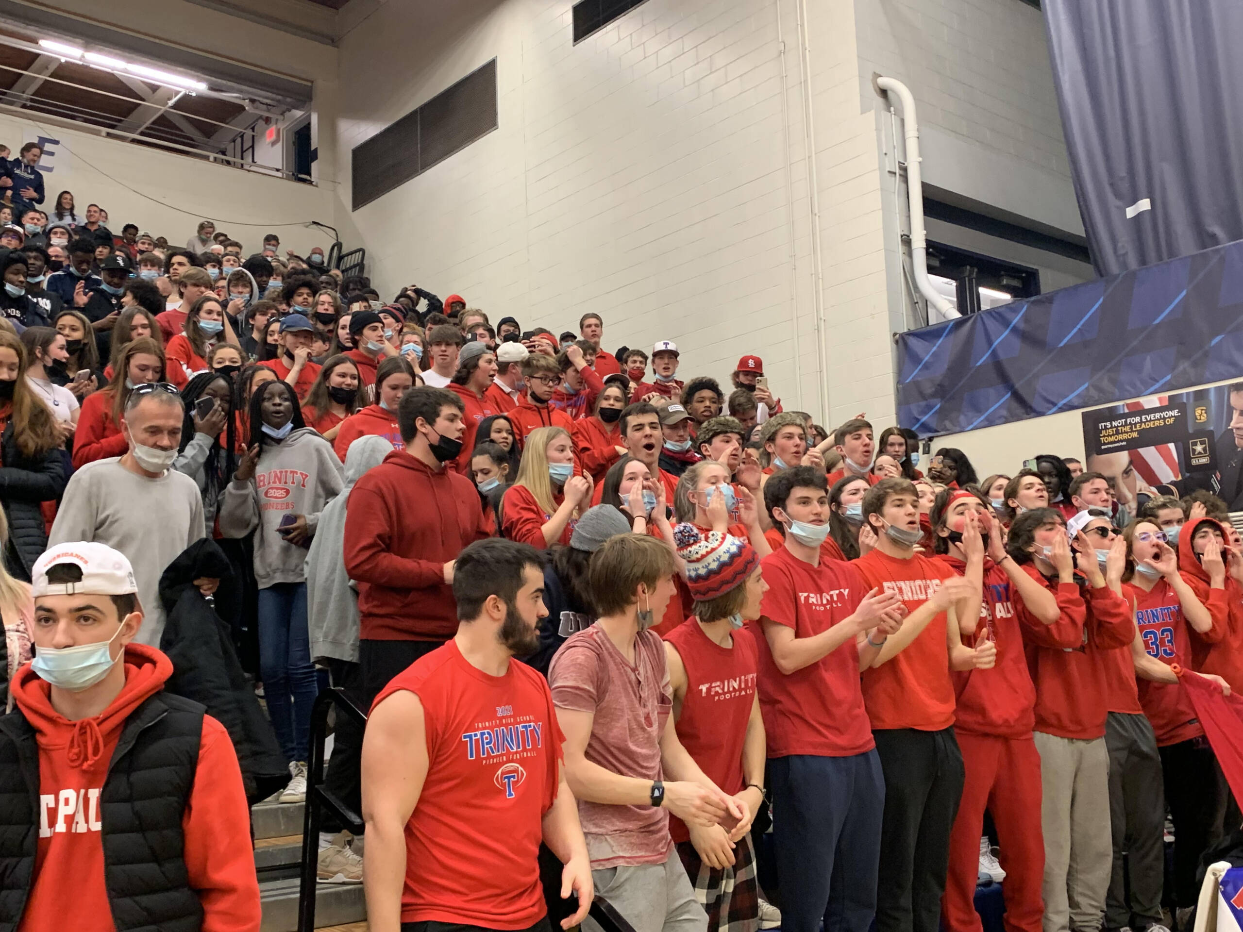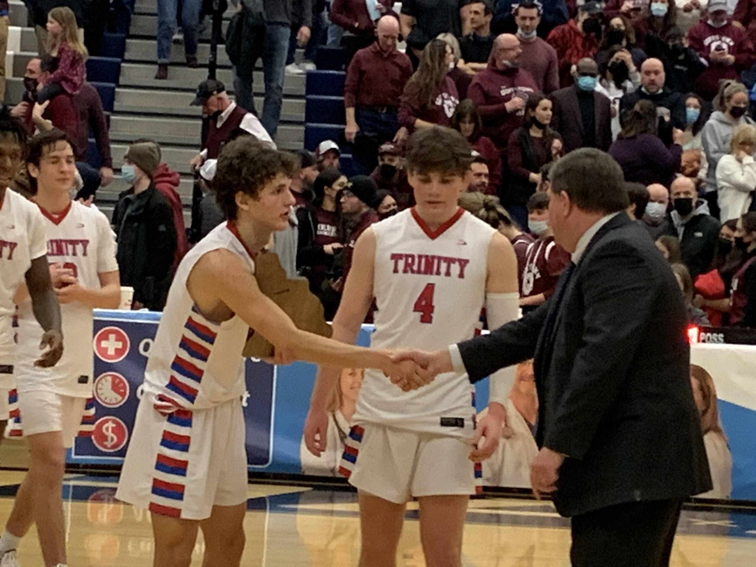 The Pioneers got another strong game from sophomore Mark Nyomah, who had 12 points, eight rebounds and a blocked shot, despite playing much of the game in foul trouble. Senior Andrew Politi left it all on the floor in his final high school game. Politi played all 32 minutes, finishing with 12 points, five rebounds and three of Trinity’s nine steals.