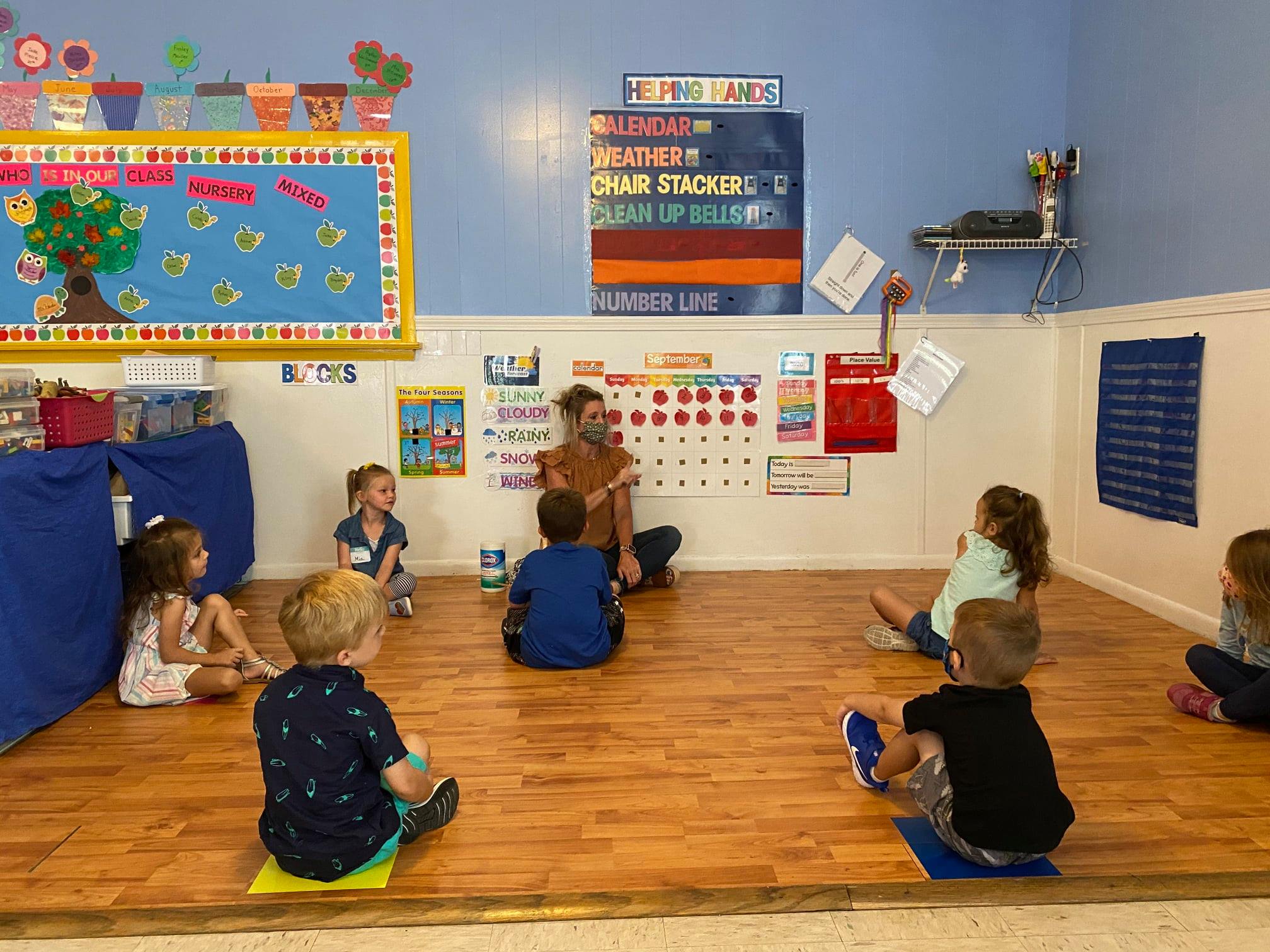 Merri-Loo is run by co-directors Heidi Bourque and Lorraine Cottle. Bourque is currently serving as head teacher for all classes. The staff at Merri-Loo continues to practice COVID-19 precautions with half capacity classrooms, socially-distanced drop-off and pick-up, and increased sanitation inside the school. As of April 5 they have returned to a fully-open schedule – Monday, Wednesday, and Friday 9 a.m.-1 p.m. for Pre K, and Tuesday and Thursday 8:30 to 11:30 a.m. for Nursery.