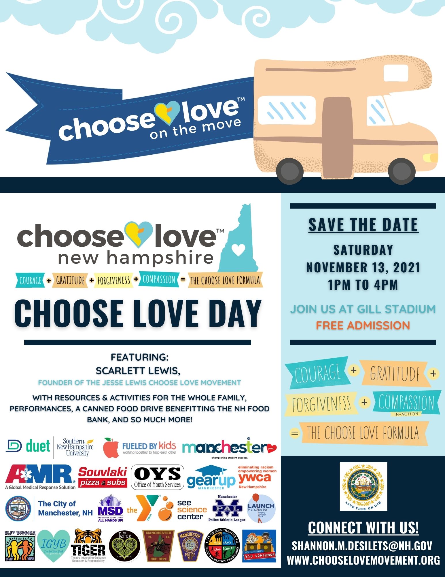 MANCHESTER, NH โ The Jesse Lewis Choose Love Movement, a non-profit organization that promotes mental health for children and adults, is bringing its โChoose Love โ On the Moveโ wellness tour to Manchesterโs Gill Stadium this Saturday from 1-4 p.m.