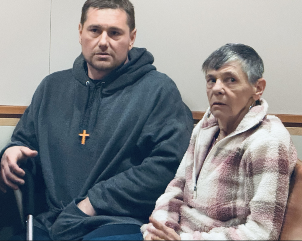 Michael Perry, 42, and his mother Roxanne Perry seated in the courtroom. Photo/Pat Grossmith