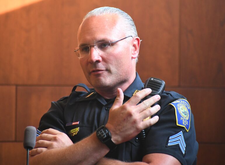 Manchester Police Department Sergeant Michael Donahue told the audience that with notice through the See Click Fix app or through phone calls, police details can be adjusted to address ongoing concerns. He also asked residents to provide as much detail as possible, as many incidents involve repeat offenders known to Manchester Police and additional information can help with apprehending suspects and recovering property.