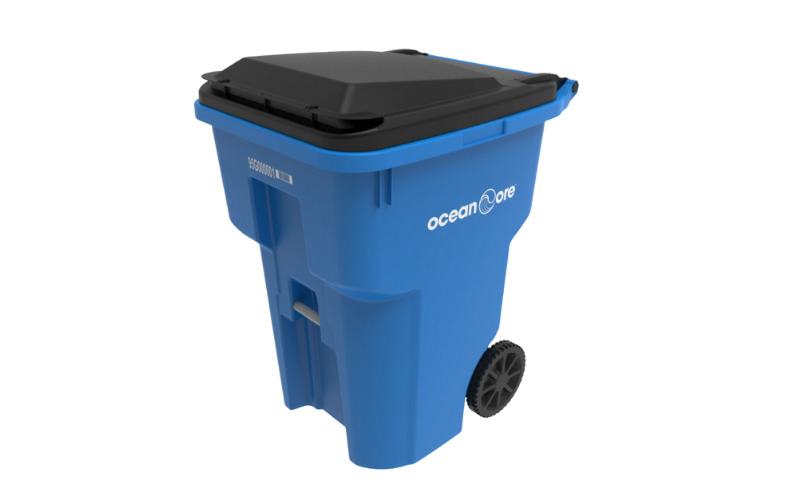 The OceanCore cart is made from a blend of 40 percent post-consumer recycled material, 10 percent of which is recycled ocean-bound plastic found in and near lakes, beaches, and waterways on the way to the ocean.