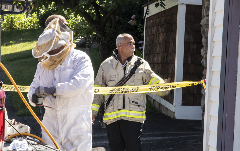 MANCHESTER, NHย โ Manchester District Fire Chief Al Poulin says he’s never had a call quite like the one that came in Thursday. It all started with a routine tree maintenance job in progress by city workers on Beech Street โ damage control after the storm โย and an angry swarm of bees defending their home.