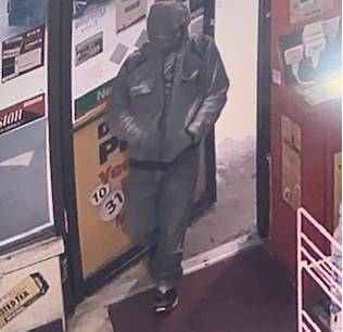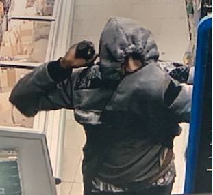 The robber was last seen wearing a gray hooded sweatshirt with black designs on the shoulders, blue Leviโs jeans and black sneakers. He is described as a black or Hispanic male, approximately 5-foot-5 to 5-foot-8 inches tall, and approximately 140-160 pounds.