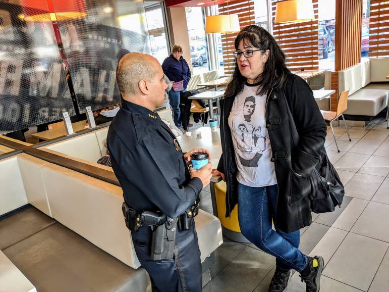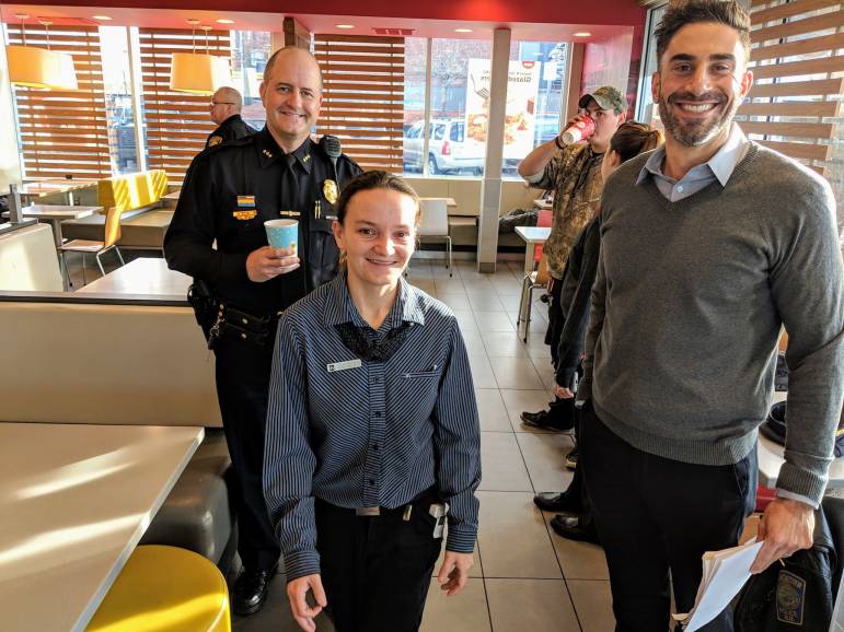 On Thursday the McDonald’s on South Willow Street was the safest place in town – that, according to Assistant Chief Ryan Grant, who was one of several police officers – including Chief Carlo Capano – swilling coffee and ready to field questions in part-two of this week’s Coffee with a Cop double-header.