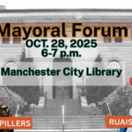 read more…: Tickets available for Oct. 28 Mayoral Forum at the libraryWe have organized a mayoral forum that is free to attend, and it’s happening Tuesday Oct. 28 at the Manchester City Library, from 6-7 p.m.