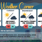 Monday’s weather: Mostly sunny, possible afternoon stray shower, high of 61