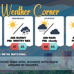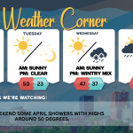 read more…: Wednesday’s weather: Sunny skies make way for clouds, high of 45Prepare for a change in the weather as the morning sun gives way to an overcast sky and cooler temperatures. Expect a chilly high of only 45 degrees, so stay warm.