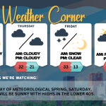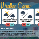 read more…: Tuesday’s weather: Partly sunny, milder, high of 46Early March storm to increase flood risk in New England. Temperatures are expected to rise, heavy rain will occur, and significant snowmelt in New England may increase the risk of flooding in the middle of the first week of March.