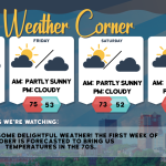 read more…: Rainy days and Mondays: High of 64, and update on Hurricane Milton’s pathExpect cloudy skies with some rain, accumulating about 0.25 inches. The high will be around 64 degrees.