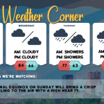 Wednesday’s weather: Cloudy and cool, possible shower, high of 64