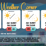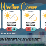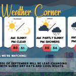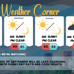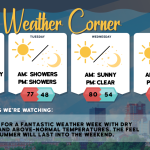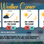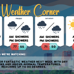 read more…: Tueday’s weather: Sunny, breezy, nice – high of 75The weather will remain dry throughout the week under high pressure. Expect chilly conditions tonight and Wednesday night due to radiational cooling. Temperatures will trend above average later in the week and into the weekend, with normal highs for this time of year typically in the upper 70s.