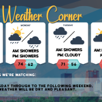 Monday’s weather: Cloudy and humid, heavy rain possible, high of 79