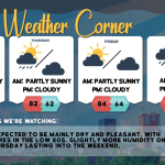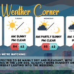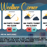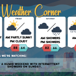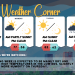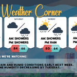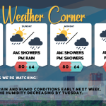 read more…: Monday’s weather: Cloudy and humid, heavy rain possible, high of 79Expect cloudy and humid conditions with showers and thunderstorms and a possibility of heavy rainfall. The high will be 79 degrees, feeling more like 85.