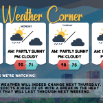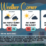 read more…: Monday’s weather: Hot and steamy with some wild storm action possible, high of 97Very hot and turning steamy with clouds & sun. It sounds like you’re in for some intense weather! Make sure to stay safe and keep an eye on the forecast. Thunderstorms can be quite dramatic, especially with the potential for flash flooding and strong winds. High 97 (feel like 99) Winds SW 10-15 mph