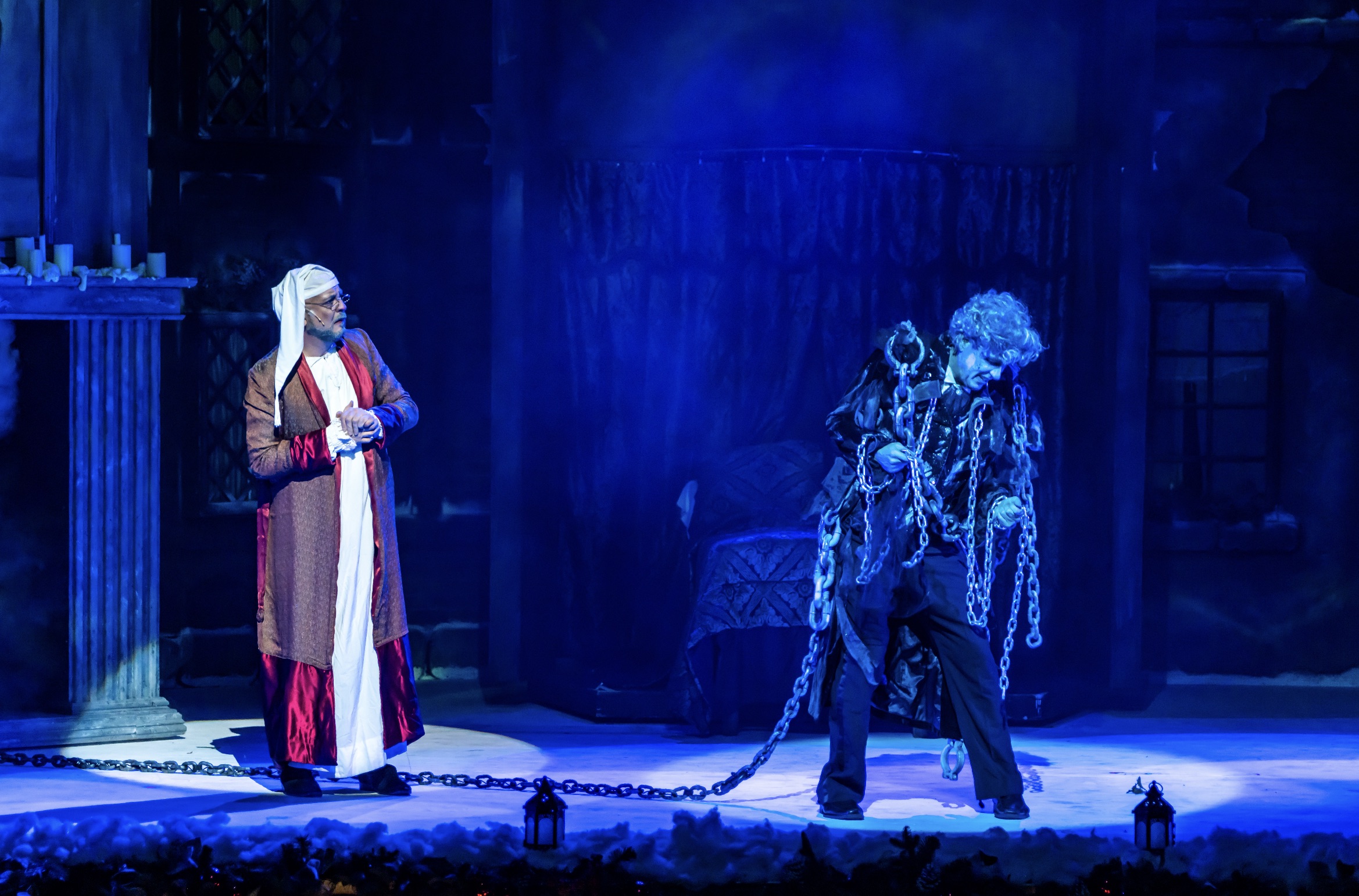 Stuart Harmon, right, portrays the ghost of Jacob Marley in “A Christmas Carol.”
